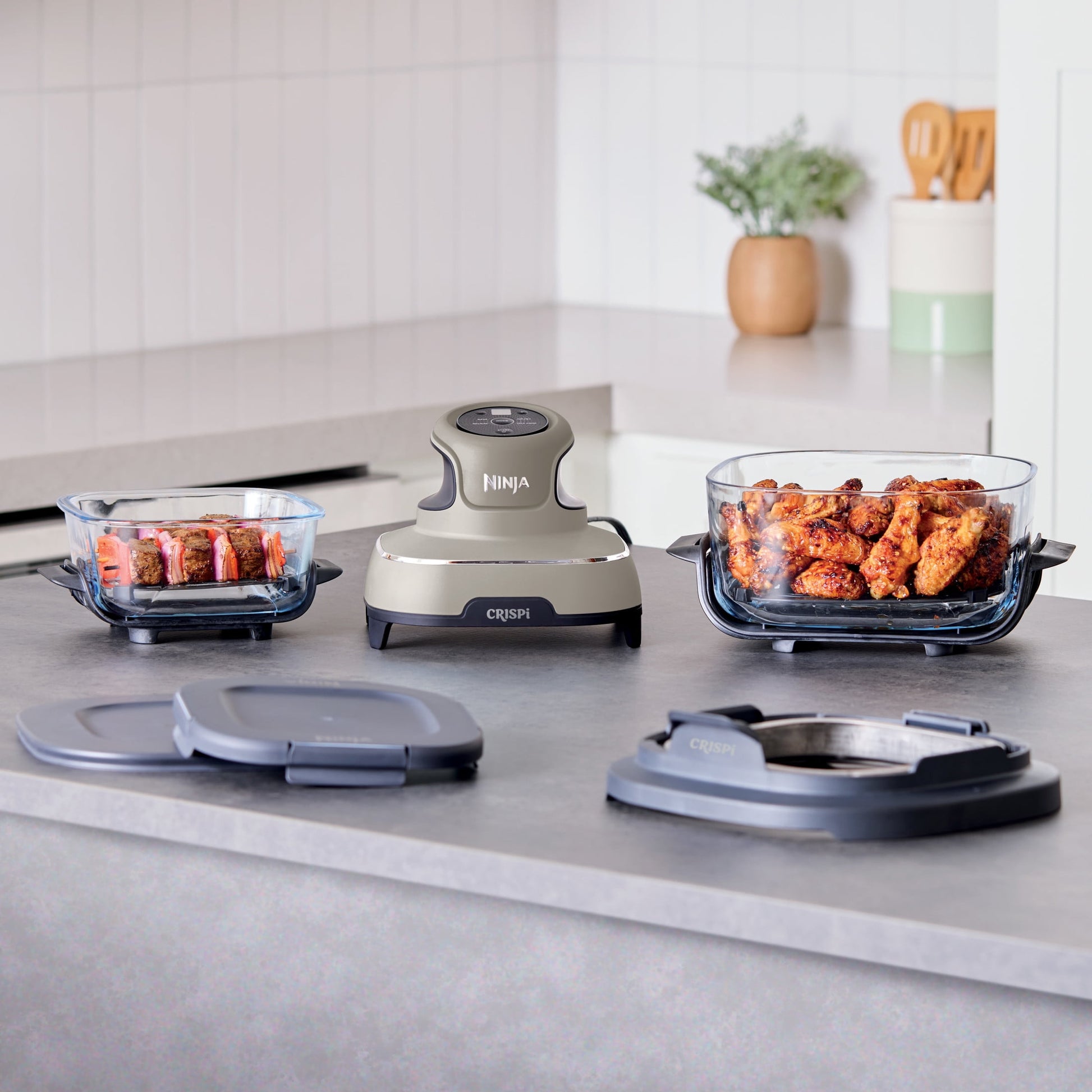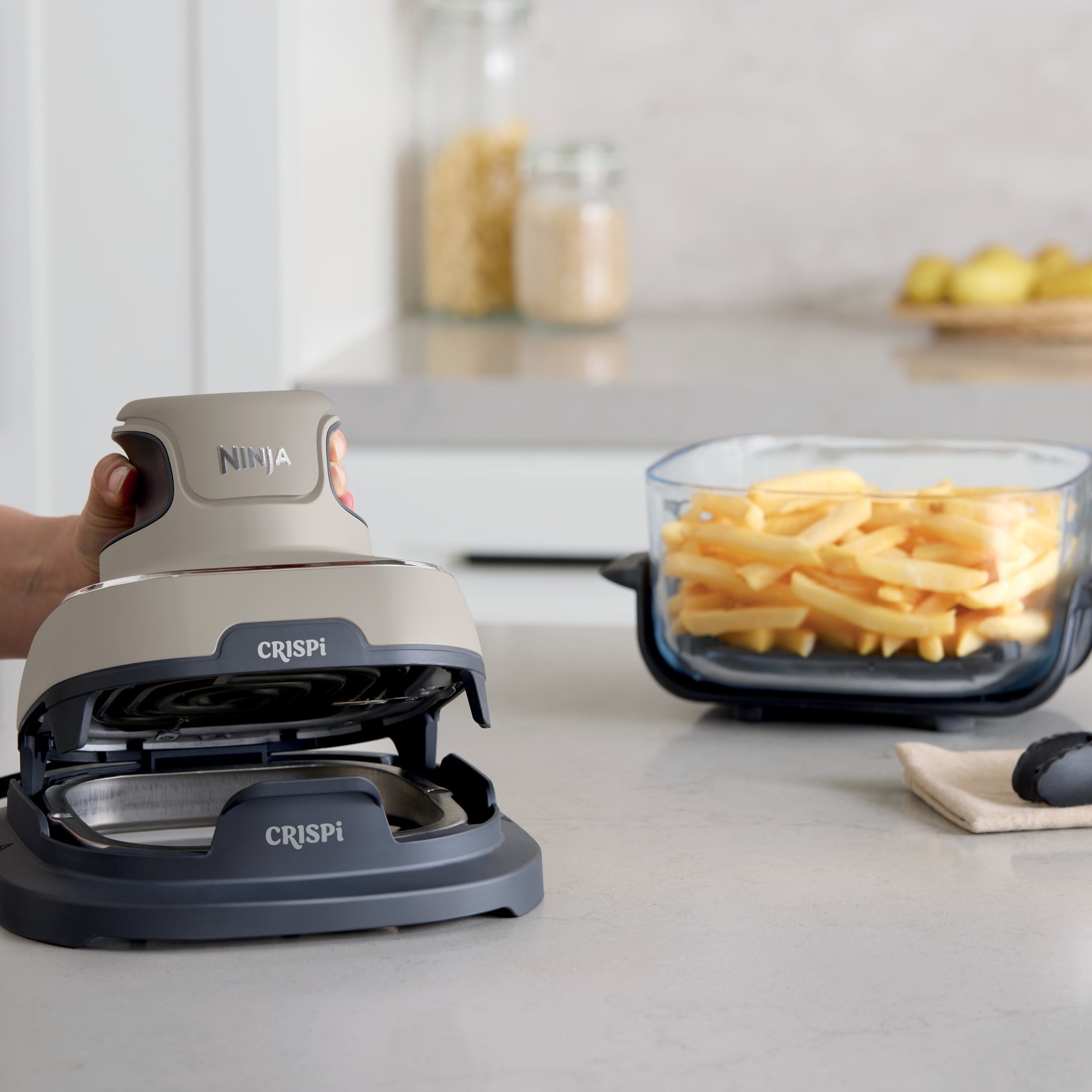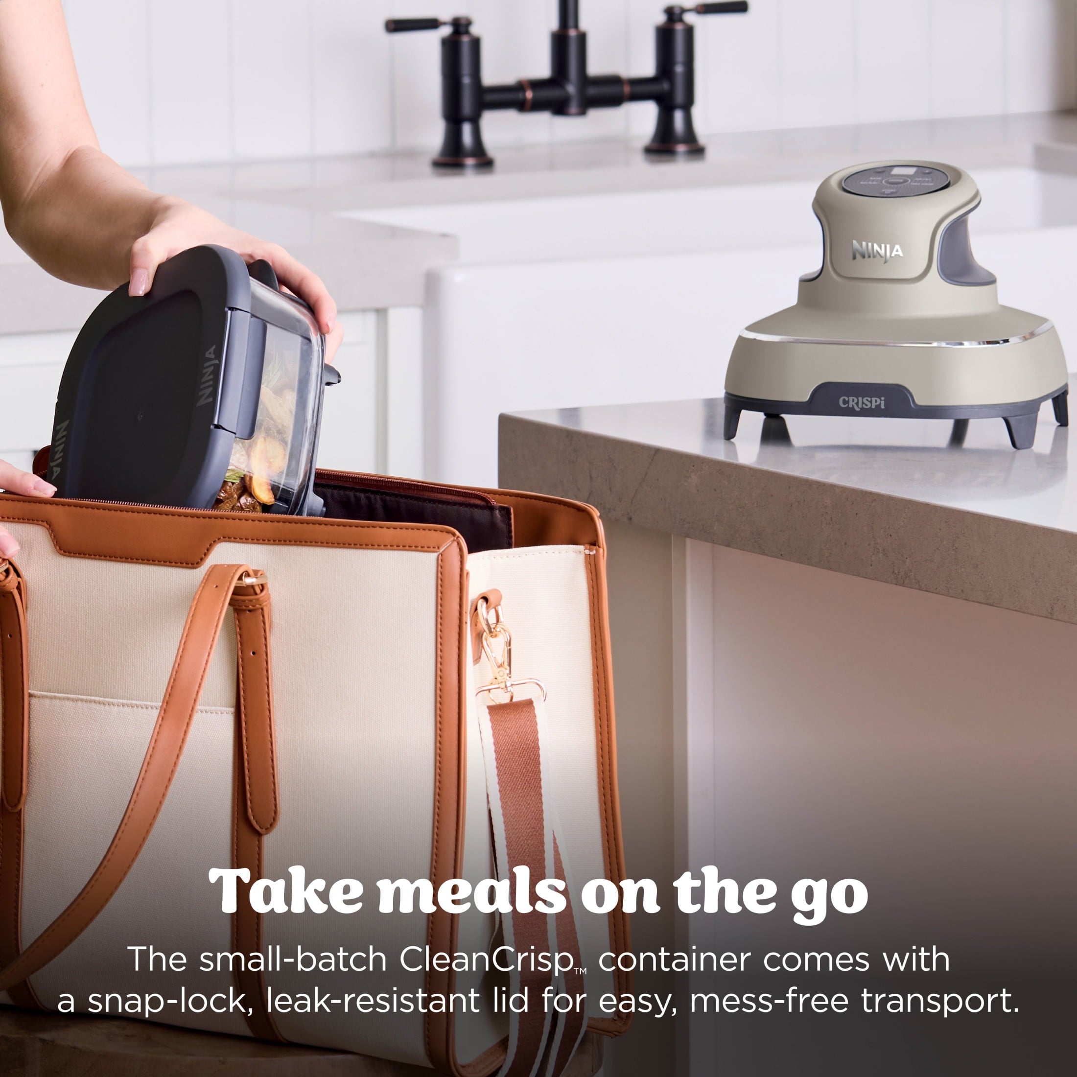 The Ninja Crispi® Portable Glass Cooking System is a compact powerhouse that packs the 1500W power of a full-sized air fryer* into a portable design. It includes a small 6-cup and larger 4-qt CleanCrisp™ container. Whether you’re making quick, single-serve meals in just 7 minutes or sharing crispy snacks on the go, the Ninja Crispi® makes it effortless. Designed for nontoxic cooking and storing without forever chemicals — PFAS and PTFE. All Crispi accessories are dishwasher safe and nestable for easy cleaning and storage. *Based on wattage compared to Ninja AF100 *- ALL-IN-ONE SYSTEM: Includes the Ninja Crispi PowerPod, 4-qt and 6-cup CleanCrisp glass containers, and 2 storage lids *- CRISPI POWERPOD: The power of a full-sized air fryer now in the palm of your hand *- SMALL & LARGE BATCH CONTAINERS: 6-cup container cooks a personal sized meal in 7 mins while the 4-qt fits a 4-lb chicken and veggies *- NONTOXIC CONTAINERS: CleanCrisp glassware is designed for nontoxic cooking and storing *- 4-in-1 FUNCTIONALITY: Max Crisp, Bake, Air Fry, & Recrisp *- FIXED HEAT PROTECTION: Permanently fixed heat-safe feet so you can safely set it on granite, laminate, quartz, butcher block, and marble *- LEAK-PROOF LIDS: Snap-lock lids ensure your meal wont spill on the go *- EASY STORAGE: Ninjas Crispi PowerPod and CleanCrisp glassware nests together for mess-free storage in your cabinets *- CRISPI CONTAINER ADAPTER: Includes an adapter so the Crispi PowerPod can be used on the larger container