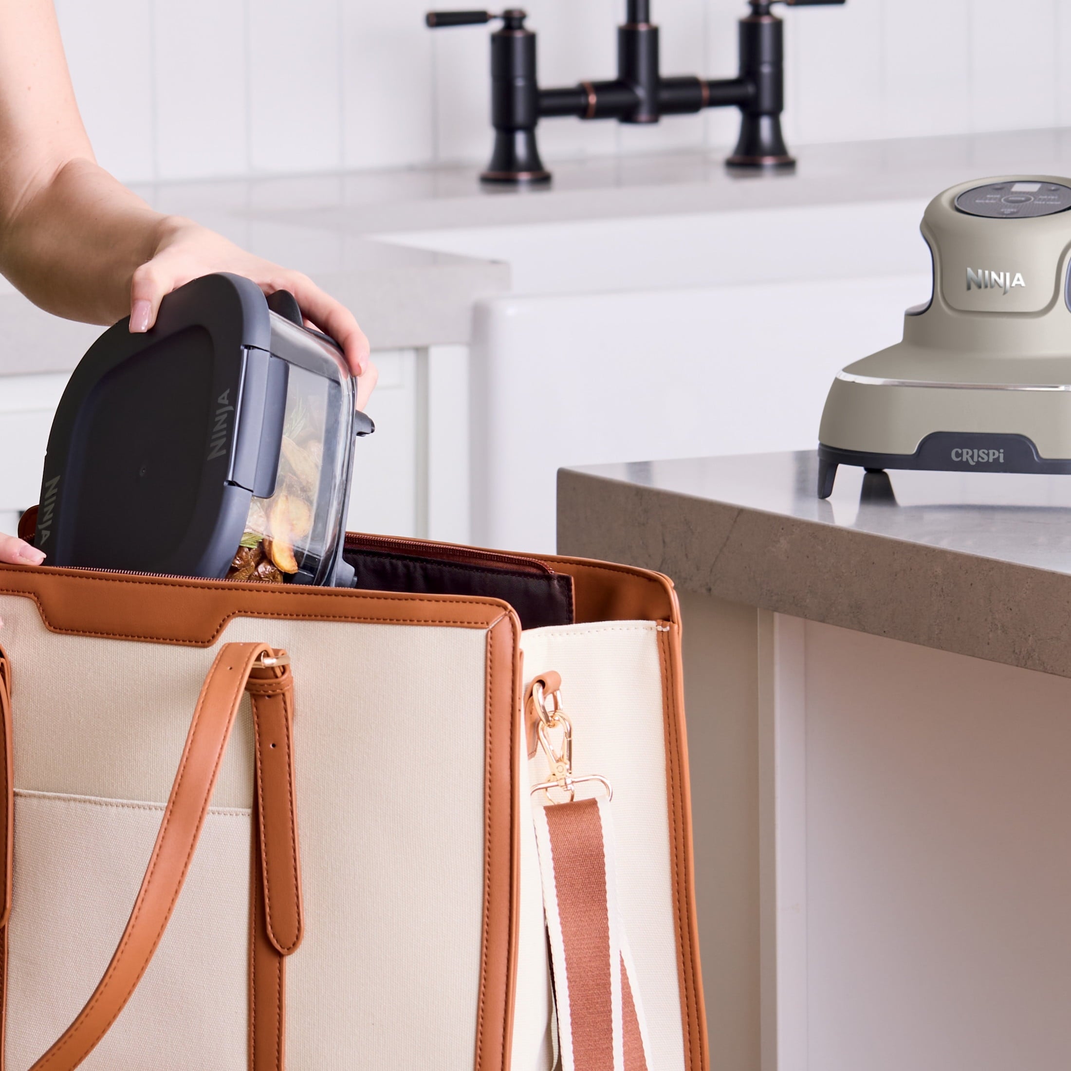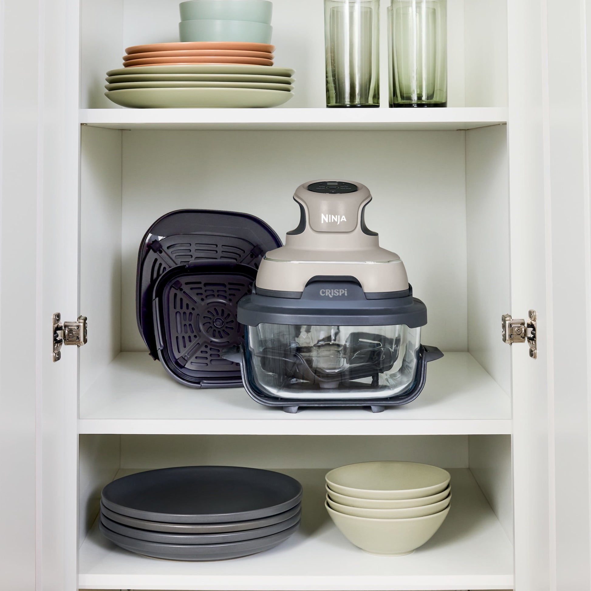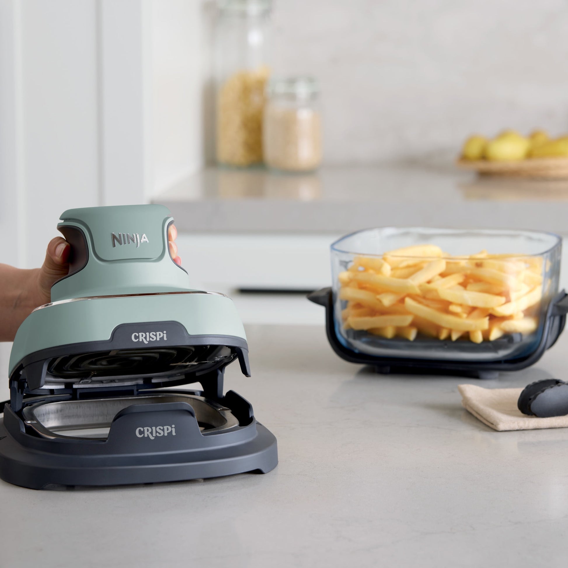 The Ninja Crispi® Portable Glass Cooking System is a compact powerhouse that packs the 1500W power of a full-sized air fryer* into a portable design. It includes a small 6-cup and larger 4-qt CleanCrisp™ container. Whether you’re making quick, single-serve meals in just 7 minutes or sharing crispy snacks on the go, the Ninja Crispi® makes it effortless. Designed for nontoxic cooking and storing without forever chemicals — PFAS and PTFE. All Crispi accessories are dishwasher safe and nestable for easy cleaning and storage. *Based on wattage compared to Ninja AF100 *- ALL-IN-ONE SYSTEM: Includes the Ninja Crispi PowerPod, 4-qt and 6-cup CleanCrisp glass containers, and 2 storage lids *- CRISPI POWERPOD: The power of a full-sized air fryer now in the palm of your hand *- SMALL & LARGE BATCH CONTAINERS: 6-cup container cooks a personal sized meal in 7 mins while the 4-qt fits a 4-lb chicken and veggies *- NONTOXIC CONTAINERS: CleanCrisp glassware is designed for nontoxic cooking and storing *- 4-in-1 FUNCTIONALITY: Max Crisp, Bake, Air Fry, & Recrisp *- FIXED HEAT PROTECTION: Permanently fixed heat-safe feet so you can safely set it on granite, laminate, quartz, butcher block, and marble *- LEAK-PROOF LIDS: Snap-lock lids ensure your meal wont spill on the go *- EASY STORAGE: Ninjas Crispi PowerPod and CleanCrisp glassware nests together for mess-free storage in your cabinets *- CRISPI CONTAINER ADAPTER: Includes an adapter so the Crispi PowerPod can be used on the larger container