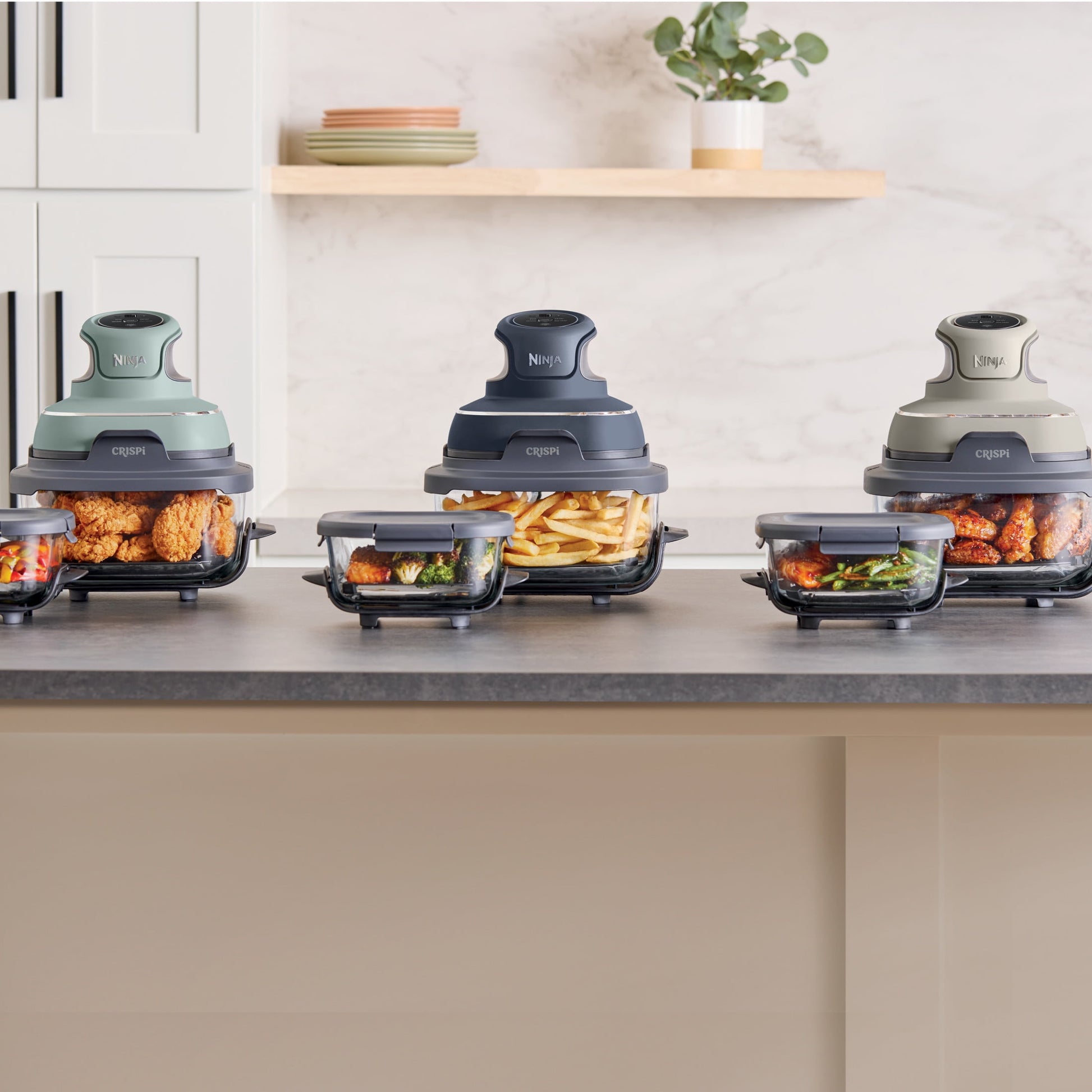 Ninja Crispi 4-in-1 Glass Air Fryer, 4 Qt & 6 Cup Containers, Designed Non-Toxic, Sage FN101SG