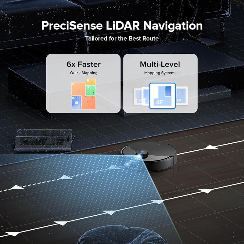 Effortless Hair Removal with DuoRoller Brush: Featuring dual rubber brushes, this advanced design increases hair pickup by 20% and minimizes tangles it delivers outstanding performance on carpets, ensuring a more thorough and efficient cleaning experience Vacuum and Mop Simultaneously: Achieve a deeper clean with the ability to vacuum and mop in one go tailor your mopping with 30 adjustable water flow levels, from low-flow for delicate surfaces to high-flow for tough grime the detachable design lets you easily switch between vacuuming, mopping, or combining both tasks 5,500 Pa Suction: With an impressive HyperForce suction power of 5,500 Pa, this vacuum cleaner effortlessly removes dirt and pet hair from various floor types, ensuring a spotless living space with every clean Hassle-Free Cleaning with Obstacle Avoidance: This robot vacuum effortlessly detects and navigates around obstacles, eliminating the need to tidy up beforehand it also suggests No-Go Zones for stairs and easy-to-get-stuck areas, preventing mishaps and ensuring a smooth, uninterrupted cleaning experience Smart Navigation for Enhanced Efficiency: PreciSense LiDAR maps your home in detail, selecting the most efficient cleaning routes Quick Mapping speeds this up, mapping your space up to 6 times faster before the first clean 3D Mapping: Generate a precise 3D map of your home to plan the optimal cleaning path customize the map by adding furniture and specifying floor materials, giving you a virtual view of your home Multi-Level Mapping: Simply place the robot on the floor, and it automatically recognizes and navigates up to four different levels of your home this feature is perfect for multi-story living, eliminating the need for additional docks the app clearly indicates the current level, making it easy to manage cleaning across multiple floors Easy-to-Use App: Effortlessly control your robot vacuum with the Roborock App schedule cleanings, customize settings, and track performance—all from your smartphone with just a few taps Multi-Level Mapping. Multi-level mapping can distinguish the different levels of your home automatically. You only need to set the robot down on the floor. No need for additional docks, the app will automatically indicate which level it is on. A maximum of four levels are supported. Fast Cleaning. Experience 30% faster cleaning by selecting a quick cleaning route on the app as needed, helping you save time. *- Effortless Hair Removal with DuoRoller Brush: Featuring dual rubber brushes, this advanced design increases hair pickup by 20% and minimizes tangles it delivers outstanding performance on carpets, ensuring a more thorough and efficient cleaning experience *- Vacuum and Mop Simultaneously: Achieve a deeper clean with the ability to vacuum and mop in one go tailor your mopping with 30 adjustable water flow levels, from low-flow for delicate surfaces to high-flow for tough grime the detachable design lets you easily switch between vacuuming, mopping, or combining both tasks *- 5,500 Pa Suction: With an impressive HyperForce suction power of 5,500 Pa, this vacuum cleaner effortlessly removes dirt and pet hair from various floor types, ensuring a spotless living space with every clean *- Hassle-Free Cleaning with Obstacle Avoidance: This robot vacuum effortlessly detects and navigates around obstacles, eliminating the need to tidy up beforehand it also suggests No-Go Zones for stairs and easy-to-get-stuck areas, preventing mishaps and ensuring a smooth, uninterrupted cleaning experience *- Smart Navigation for Enhanced Efficiency: PreciSense LiDAR maps your home in detail, selecting the most efficient cleaning routes Quick Mapping speeds this up, mapping your space up to 6 times faster before the first clean *- 3D Mapping: Generate a precise 3D map of your home to plan the optimal cleaning path customize the map by adding furniture and specifying floor materials, giving you a virtual view of your home Multi-Level Mapping: Simply place the robot on the floor, and it automatically recognizes and navigates up to four different levels of your home this feature is perfect for multi-story living, eliminating the need for additional docks the app clearly indicates the current level, making it easy to manage cleaning across multiple floors Easy-to-Use App: Effortlessly control your robot vacuum with the Roborock App schedule cleanings, customize settings, and track performance—all from your smartphone with just a few taps Multi-Level Mapping. Multi-level mapping can distinguish the different levels of your home automatically. You only need to set the robot down on the floor. No need for additional docks, the app will automatically indicate which level it is on. A maximum of four levels are supported. Fast Cleaning. Experience 30% faster cleaning by selecting a quick cleaning route on the app as needed, helping you save time.