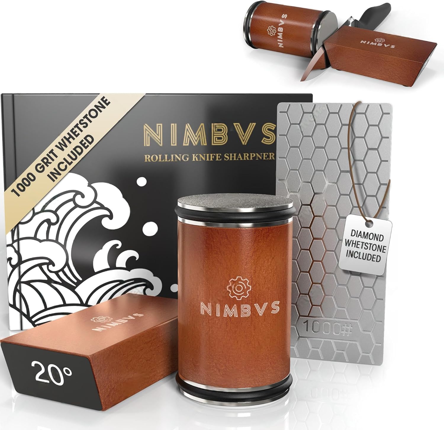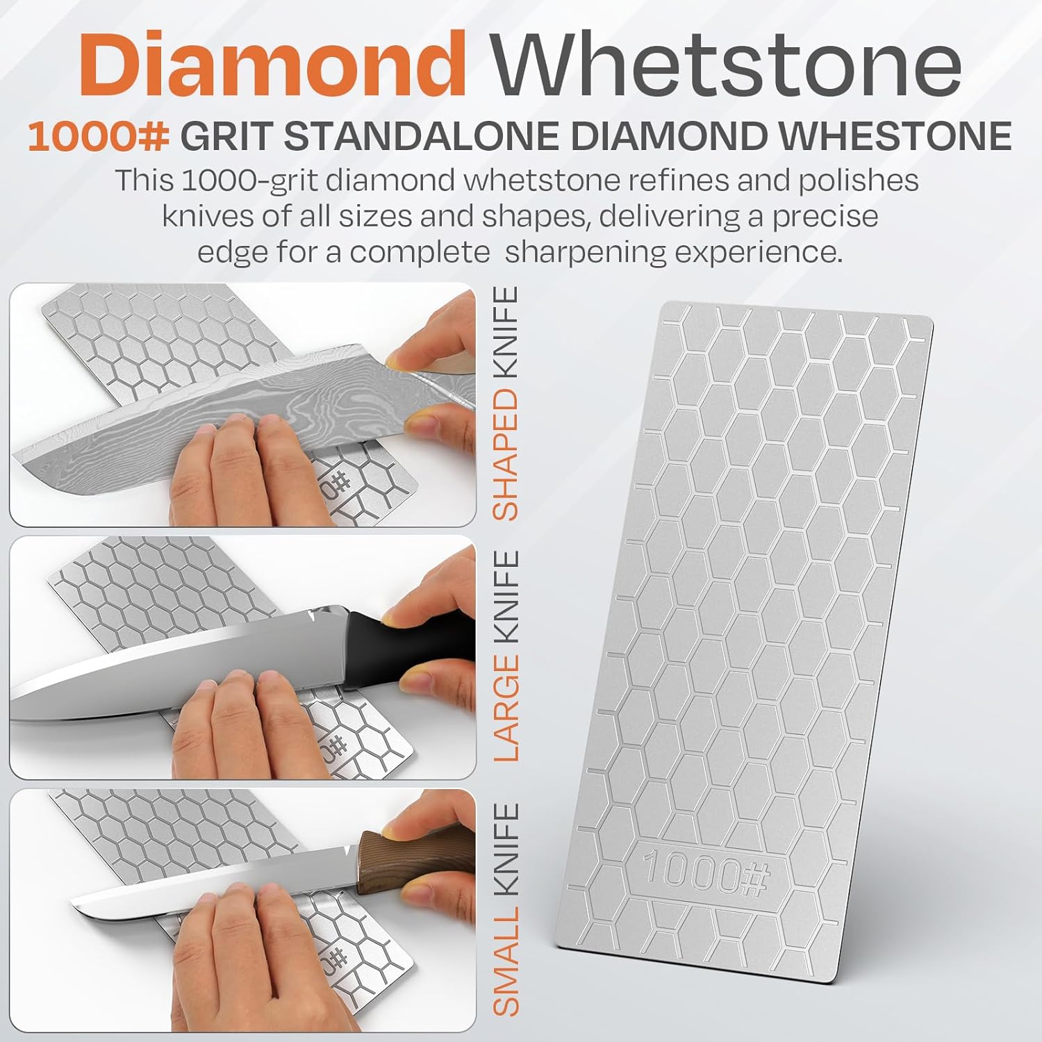 Rolling Knife Sharpener Kit with Diamond & Ceramic Sharpening System – 1000# Grit Whetstone, 15° & 20° Magnetic Angles, Non-Slip Base, Professional Sharpening Kit for Kitchen & All Blade Types
